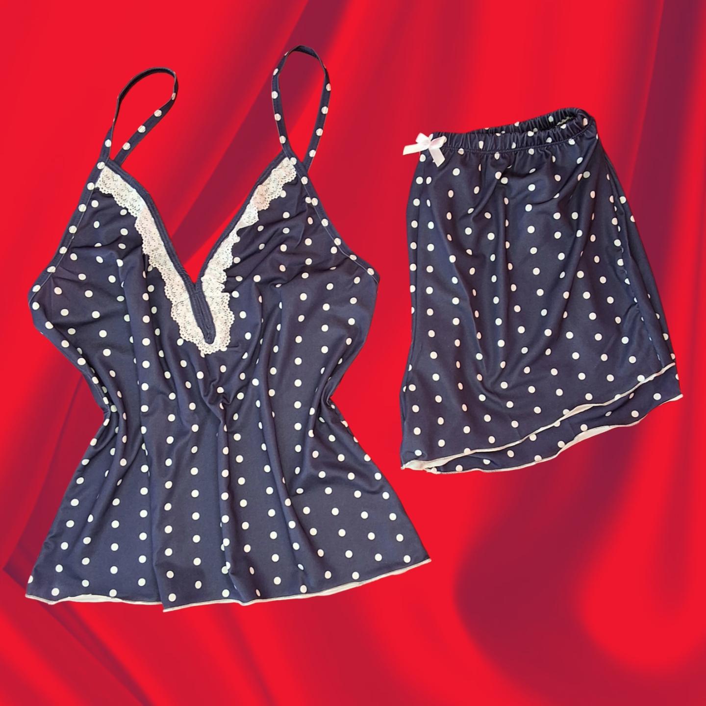 Lacivert Puantiyeli İp Askılı Kadın Şortlu Pijama Takımı