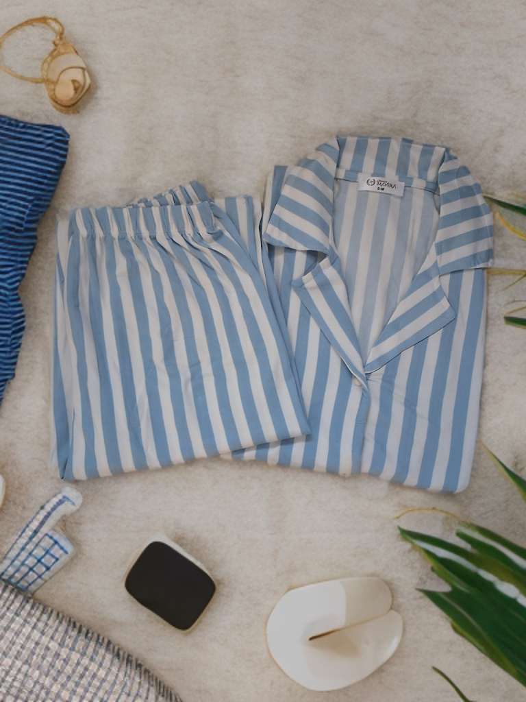 Mavera Kadın Mavi Beyaz Çizgili Kısa Kol Uzun Pijama Takımı, genç kızlardan kadınlara kadar her yaş grubundaki bireylere hitap etmektedir. Hem evde rahatça vakit geçirmek isteyenler hem de şık bir uyku seti arayanlar için mükemmel bir alternatiftir. Arkadaşlarınıza hediye edebileceğiniz zarif bir seçenek olarak da öne çıkmaktadır.